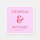 Celebrate your wedding with these elegant napkins, featuring pink background and bold red typography. Easily add your own details by clicking on the "personalise" option.