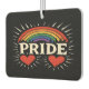 Show your true colours on the go with this vibrant and vintage-inspired PRIDE car air freshener! Featuring a bold rainbow arching over the word "PRIDE" in distressed white lettering, flanked by two bright red hearts and radiating lines, this design pops on a sleek black background. Perfect for Pride Month, parades, or everyday visibility, this air freshener is a powerful symbol of love, acceptance, and unity.