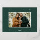 Stylish holiday card featuring your horizontal photo on the front with "Merry Christmas" displayed in a bold gold foil script overlay. Personalise the front of the photo Christmas card with your family name and the year. The foil holiday card reverses to display an additional photo framed in white with a dark green background with subtle white dots.