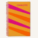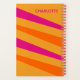 Groovy 1970's retro vintage monogram custom notebook. Bold stripes in orange, pink and mustard. Personalise this stylish trendy colourful script typography.