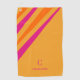 Bold retro vintage modern stripes custom golf towel for golf gals and golf lover. Stripes in orange, pink and mustard yellow. Personalise this stylish trendy modern script typography .