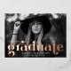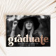 Stylish graduation announcements featuring the graduate's horizontal photo with "graduate" in bold rose gold foil lettering. Personalise the photo graduation announcement by adding the graduate's name, graduation year, and school. The rose gold foil graduation announcement reverses to display a black and white retro arch pattern.