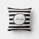 Bold Rugby Stripes With Monogram and Name in Black Cushion