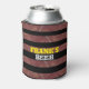 Black and rust stripes can or bottle cooler. Dress up your soda and beer bottles, keep your hands from getting cold. Background colour which I have in black can be changed to any colour you like. Personalise with your text, choose your favourite font and colour. Choose bottle or can.