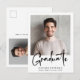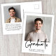 Modern graduation announcement postcard featuring your photo and "Graduate" in a stylish bold script. Add the grad's name, school and class year in simple typography. On the reverse, add an additional photo and personalised message, or leave blank.