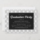 Simple and stylish graduation party invitation featuring the graduate's horizontal photo with "Graduate" in a bold white script. Personalise the photo graduation party invite by adding the graduate's name, school name, and graduation year. The invite reverses to display your graduation party details with a black and white geometric arch pattern background.
