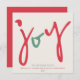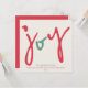 These minimalist 5.25" x 5.25" holiday greeting cards feature the greeting, "joy," in a large red and green fun font with the additional editable greeting, "Wishing you peace, love & joy this holiday season." Simply add your family name(s) and year.