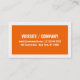 Orange and white business card. Bold, wide border business card. Simple, strong and impactful design. Large plain white border and large bold white text on orange background.