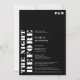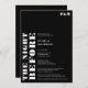 Bold simple white on black wedding rehearsal dinner with the night before written in oversized bold font. Perfect rehearsal wedding idea.