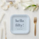 Bold Soft Blue Modern 50th Birthday Custom Paper Plate