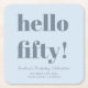 Bold Soft Blue Modern 50th Birthday Custom Square Paper Coaster
