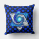 This extra plump & cushy throw pillow will be a real stand-out in whatever room you place it! Featuring digital artist, Leslie Sigal Javorek's popular original painting of a swirling, leaded, stained glass Star of David in vibrant gradients going from white to deep cobalt blue, backed by a dramatic repeating pattern of black, ultramarine & yellow. See Jewbilee's coordinating pillows & other home decorating accessories.