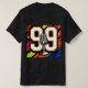 This black T-shirt features a dual style of street graffiti + vintage hip-hop: the front showcases a bold, oversized “99” number as the base, overlaid with a retro microphone element, paired with contrasting orange and white colors plus a colorful striped graffiti texture. The brushstroke effect is full and instantly amplifies street fashion vibes.