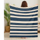 bold Striped Navy Blue and Beige Coastal Decor Fleece Blanket