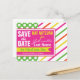 Modern styling with bright colours featuring a design of big polka dots and stripes. Just personalise with your details for a trendy and stylish announcement.
