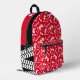 Bold stylised tractor graphic wheat name red printed backpack