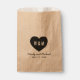 Stylish rustic kraft favour bag featuring your initials against a dark grey heart with your name and wedding date below it.