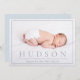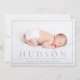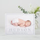 Customise this modern and chic baby birth announcement card with your sweet baby's photo and details. The card features a framed baby photo with baby's name in bold font and other details.