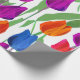 Elevate your gift-giving experience with our stunning wrapping paper, featuring bold purple, orange, and blue tulips set against a crisp white background. This vibrant design effortlessly captures the essence of spring, adding a touch of elegance and sophistication to any present. Experience the perfect blend of artistic beauty and quality, making every gift a truly memorable and visually captivating gesture.