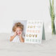 A modern typographic holiday photo greeting card featuring bold, bright type in a variety of alternating colours and gold foil.
