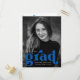 Bold graduation party invitation postcards featuring the graduate's vertical photo with "grad" in bold blue lettering. Personalise the photo graduation party invites by adding the graduate's name, graduation year, and school. The postcard graduation party invite reverses to display your return address and party details.