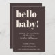 This baby shower invitation in brown features bold, modern typography with a playful “hello baby!” headline and a rich neutral background. Names, date, time, location, and RSVP details are fully customizable to fit your celebration. The simple layout makes it easy to read and works beautifully for brunch showers, restaurant gatherings, and intimate events. A modern option parents-to-be love for its timeless style and effortless coordination with matching shower decor.