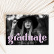 Stylish graduation announcements featuring the graduate's horizontal photo with "graduate" in bold light purple lettering. Personalise the photo graduation announcement by adding the graduate's name, graduation year, and school. The announcement reverses to display a lilac purple and white retro arch pattern.