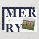 Bold Typography MERRY Holiday Photo Card Navy Blue