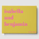 This wedding guest book features the couple's names in big, bold hot pink letters across a mustard yellow cover, with the wedding date tucked in the corner. It's a cover that makes a statement — the kind of book you prop on the signing table and guests notice right away. You add the two names and the date and it's completely personalized. A great fit for a couple with a colorful, fun wedding, and a really thoughtful gift to bring to a shower or drop on the registry.