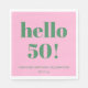 This personalized party napkin in pink and green features bold “hello 50!” typography in a clean, modern layout for a fun milestone birthday celebration. Customized with a name and date, it adds a playful yet polished touch to bar setups, dessert tables, or party place settings. The simple design works well for casual gatherings, cocktail parties, or backyard celebrations. A festive detail that helps tie the party decor together while marking a special birthday moment.