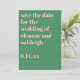 These personalised save the date cards in pink and green give guests an early heads-up while setting the tone for your wedding day. Customise the names, date, location, and website to share the details guests need most, whether you’re planning a destination wedding or a local celebration. The bold, modern typography stands out in the mail and pairs easily with minimalist or contemporary wedding stationery. A simple, effective option for couples who want their save the date to feel intentional and easy to read.