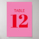 Bold Typography Bright Pink and Red Modern Bat Mitzvah Table Number Sign