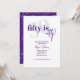 Bold typography with calligraphy 50 is nifty birthday party invitations in purple and white. The back features an all purple background with white spots/bubbles to emulate the bubbles in wine and champagne to celebrate how we age like a find wine. All text is completely customisable.