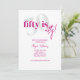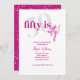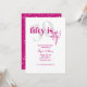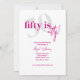 Bold typography with calligraphy 50 is nifty birthday party invitations in pink and white. The back features an all pink background with white spots/bubbles to emulate the bubbles in wine and champagne to celebrate how we age like a find wine. All text is completely customisable.