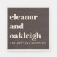 This personalized wedding napkin in brown and cream features bold, modern typography with a clean stacked layout highlighting the couple’s names. The neutral color palette works well for contemporary weddings, rehearsal dinners, and reception tables. Names and text are fully customizable to match your celebration details. A simple, polished choice for couples planning a modern event.