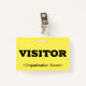 This eye-catching badge design features the message "VISITOR", and a customisable company name or other custom message. A badge like this could perhaps be used to indicate that a person is a known and authorised guest or visitor at a business or workplace. [~Z0000307]