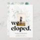 Share the fabulous news of your elopement with this bold yet elegant botanical wedding announcement. With calm watercolor greenery and a splash of serif font, this will help with the surprise of your elopement!