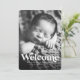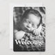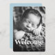 A bold vintage-style "welcome" against a vertical photo makes a sweet and stylish way to introduce your new baby. With room for name and stats on the front with the photo, the back of this birth announcement is a sweet dotted dusty light blue (colour can be changed by clicking "customise"). Perfect for cool new parents to introduce their new little girl with a bit of modern vintage flair!
