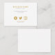 A clean, modern business card featuring a crisp white background with sophisticated gold accents. The top section highlights your business or company name in bold gold uppercase letters, with your title or company name below in subtle grey. Contact details are presented in a minimalist sans-serif font for clarity, including space for email and phone number. The bottom of the card features three gold social media icons, with space for your handle and website, making it easy for clients to connect with you online. This design is ideal for entrepreneurs, creatives, and professionals seeking a polished, contemporary look.