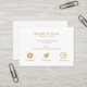 Stand out with a clean white and gold social media business card that centres the brand name and neatly lists email, phone, website, and three social handles for effortless connection. The icon row keeps platforms recognisable while preserving a minimalist look; handles sit directly beneath each icon for quick follow through. Gold accents are a printed colour, not metallic foil, ensuring a sleek, modern finish. If you need help changing the social icons, please contact me.