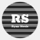 Bold White Monogram & Name, Lt Grey Lines on Black Classic Round Sticker