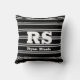 Bold White Monogram & Name, Lt Grey Lines on Black Cushion