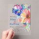 This Bold Wildflower Garden Clear Acrylic Invitation bursts with vibrant watercolor blooms in bold shades of blue, hot pink, peach, and a hint of magenta, accented with lush greenery. The see-through acrylic design adds a modern, sophisticated edge, allowing the colorful florals to shine beneath your wedding details for a keepsake-worthy presentation.