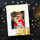 This playful and modern New Year photo card features large typography year numbers in gold foil with a single vertical photo on a chic white background. On the reverse side is the same white background. You can add another photo or text to the back by selecting "design using editing tool". Add the "wow" factor with a real pressed foil holiday card this year!