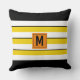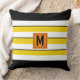 Freshen up your indoor or outdoor living spaces with this contemporary pillow that features modern colour blocking, bold stripes, and a customisable initial. Bright colours in sunny hues of yellow, orange, and black will add a splash of fun to your living room, porch, or patio. Makes a perfect housewarming gift for new homeowners.