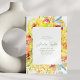 This bridal shower invitation features a vibrant border of hand-painted watercolor florals in sunny yellow, coral, and soft green. The centred white panel keeps the text crisp and readable while letting the vivid flowers shine. A cheerful pick for garden or summer showers.
