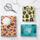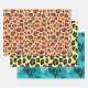 Bold and modern seamless Zebra and Leopard print wrapping paper sheets. This set contains teal and white Zebra print hearts, grey and black Leopard print on a bright yellow background, and pink and black Leopard print on a tangerine background. Add a little jungle fever to your gifts and wrap them up in these bright and colourful patterns.