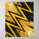 A striking abstract background dominated by bold yellow zigzag shapes cutting across a black backdrop. The design is infused with sharp geometric patterns, fragmented triangles, and streaks of white resembling energetic flashes. The contrast between the golden yellow and deep black creates a powerful and dynamic visual impact, while the layered textures and cracks add a sense of raw intensity and motion. This artwork captures the essence of speed, power, and explosive energy in a modern graphic style.