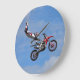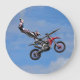 A member of the Bolddog Lings Freestyle Motocross Display Team performs stunts at the 2014 Great Dorset Steam Fair, Tarrant Hinton, Blandford, Dorset, United Kingdom.
