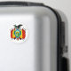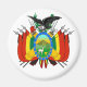 The coat of arms of Bolivia has a central cartouche surrounded by Bolivian flags, muskets, laurel branches, and has an Andean condor on top.